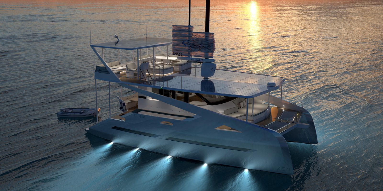 ZEN Yachts的ZEN50 电动双体船,配备太阳能、自动翼帆和 Starlink