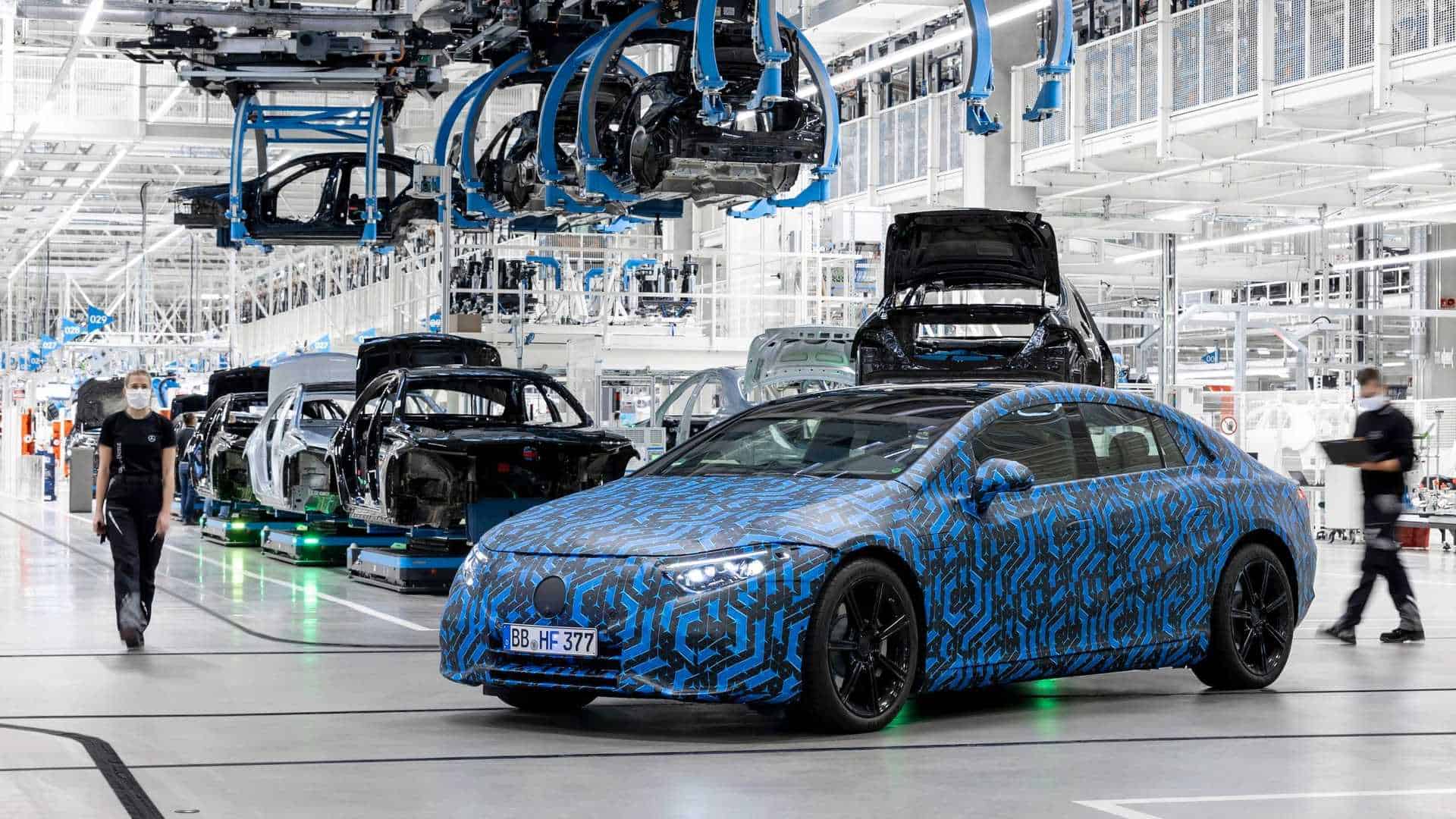 EQS 是梅赛德斯-奔驰的首款电动奢华轿车,将于 2021 年上半年在德国辛德芬根工厂的 56 号工厂开端出产。电动紧凑型 SUV EQA 在拉施塔特工厂的出产发动,EQB 出产在匈牙利的 Kecskemét 工厂进行,高效电池体系还将在出产网络内制作和拼装。