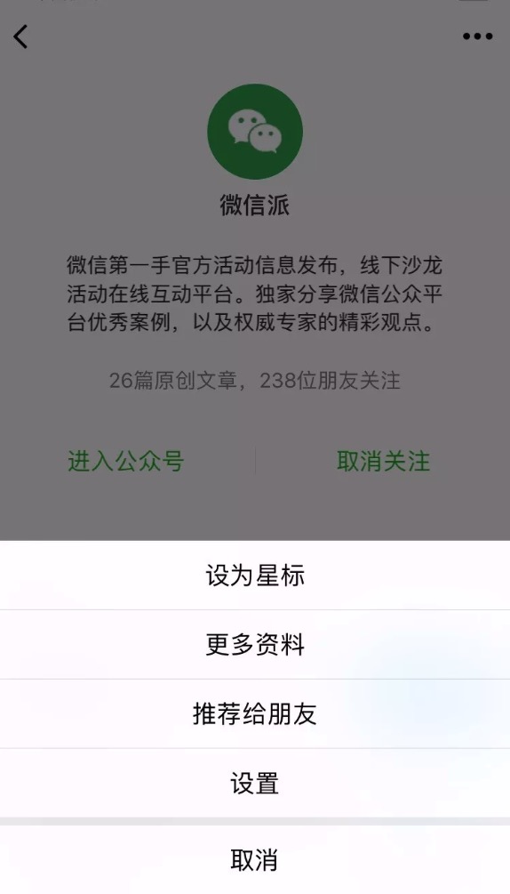 除此之外,细节上也发生了一些改变,本来的“置顶”功用,现在改为“星标”,“星标”订阅号音讯内容相同依照时刻排序,不再置于最顶部方位。不过用户仍然能够进入订阅号会话列表,找到被置顶的星标订阅号。
