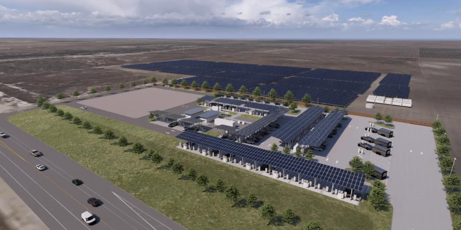 特斯拉发布了一项名为“Oasis”的全新超级充电站项目方案,该项目将包含 168 个超级充电站以及其自己的太阳能发电场和 Megapack 电池体系。
